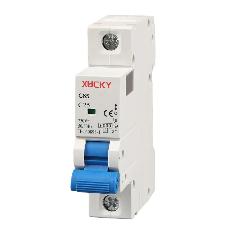 L'interruttore automatico miniaturizzato C65 6KA (chiamato anche MCB domestico 6KA, simile a CHINT NB1-63) viene utilizzato per il circuito CA 50 Hz, tensione nominale di 110 V/230/400 V, corrente nominale di 1 A, 2 A, 3 A, 6 A, 10 A, 16 A, 20 A, 25 A, 32 A, 40 A, 50 A, 60A, 63A per proteggere sovraccarico e cortocircuito, nonché per l'uso in circostanze normali di conversione poco frequente del circuito, può essere utilizzato anche come interruttore isolante per il circuito di interruzione per proteggere il circuito e l'apparecchiatura.