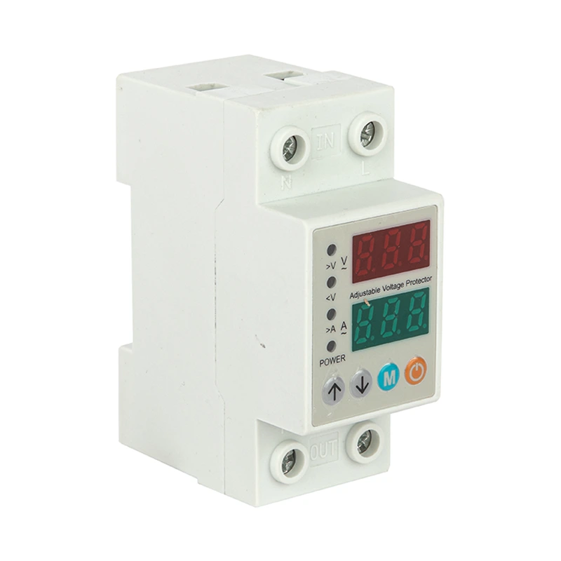 La larghezza del dispositivo di protezione della tensione regolabile è di 36 mm. La corrente di controllo è molto comoda da installare nella scatola di distribuzione. Il circuito di controllo è assemblato con componenti importati. Il prodotto è realizzato secondo standard modulare, con prestazioni e affidabilità eccellenti. Può funzionare normalmente in condizioni di tensione anomale. Quando la tensione di rete supera il valore della tensione di azione di sovratensione impostato dal protettore o è inferiore al valore della tensione di azione di sottotensione del protettore, il protettore può interrompere rapidamente e in modo affidabile il circuito per proteggere la sicurezza dell'apparecchio. Quando la tensione di rete ritorna normale, il protettore può ritardare automaticamente la connessione di alimentazione e ripristinare l'alimentazione. Tutte le funzioni vengono realizzate automaticamente senza operazione manuale. Il LED sul pannello può indicare lo stato di funzionamento della protezione. La luce verde dell'indicatore luminoso indica l'alimentazione funzionante. Quando la luce rossa dell'indicatore è spenta, l'alimentazione è normale. Quando la luce rossa è accesa, la funzione di protezione inizia a interrompere l'alimentazione. La protezione da sovratensione e sottotensione autoripristinante ha una struttura compatta e un bell'aspetto ed è installata con guida DIN da 35 mm.